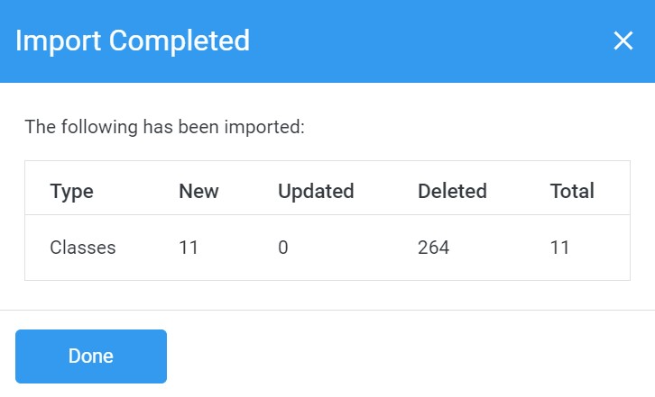 Please note that importing a classes spreadsheet will always replace existing class data within the system.